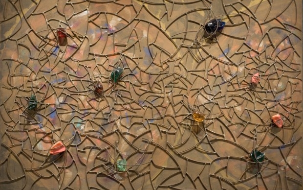 Claire-Falkenstein-Vibrazione-Venezia-1964-ferro-vetro-di-Venezia-olio-su-tela-©-The-Falkenstein-Foundation-Courtesy-Sandy-and-Adrea-Bettelman-Los-Angeles.jpg[/caption]