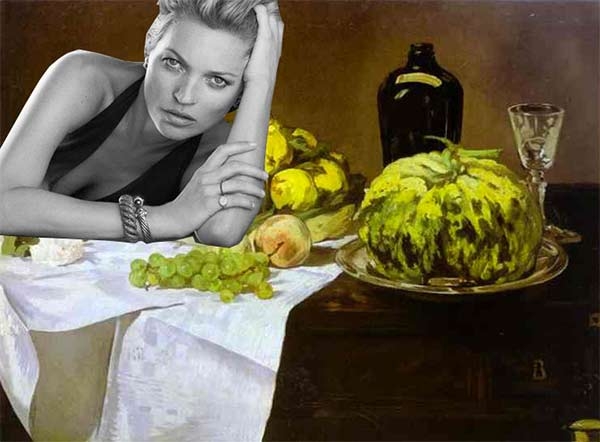 I Ate to many grapes: Kate Moss feat. Still life with melon and peaches (Manet)[/caption]