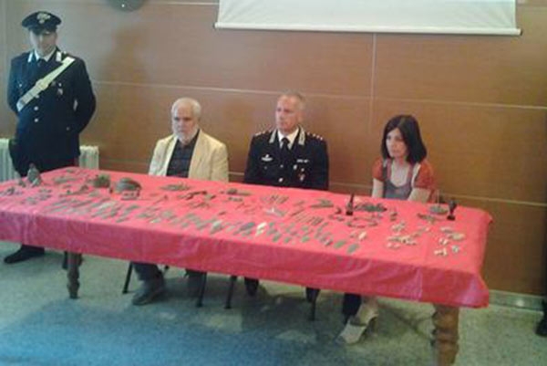 Oltre 400 preziosi reperti di provenienza nuragica tra cui numerosi bronzetti trafugati dal territorio italiano ed illecitamente esportati. Attualmente i pezzi sono allo studio da parte degli Archeologi della Soprintendenza ai beni Archeologici di Cagliari e Nuoro