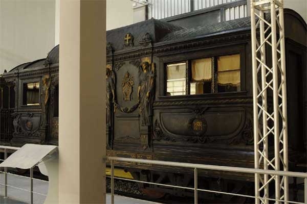 Dopo un lungo lavoro di riprogettazione e restauro da parte dei tecnici della Soprintendenza, l’ex sala caldaia della Centrale ospita ora i tre vagoni del treno realizzato nel 1858 per Papa Pio IX che lo utilizzò nei suoi spostamenti all’interno dello Stato Pontificio