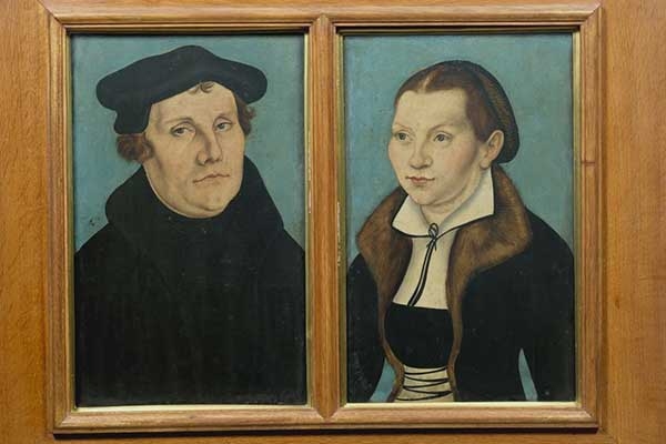 Lukas Cranach il Vecchio, Ritratti di Martin Lutero e Caterina von Bora, olio su tavola, Firenze, Galleria delle Statue e delle Pitture degli Uffizi[/caption]