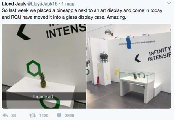Il frutto abbandonato da due studenti all’interno della Robert Gordon University in Scozia è finito esposto in una teca. Un episodio molto simile si era verificato lo scorso anno al Moma di San Francisco