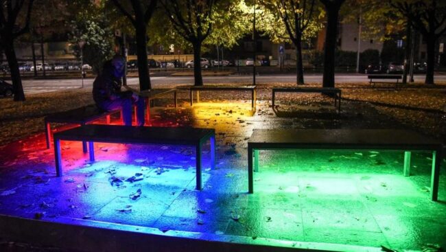Danneggiate le panchine luminose di Jeppe Haien. La scorsa settimana invece era stata presa d’assalto l’installazione di Vanessa Safasi