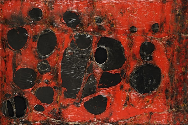 Alberto Burri, Rosso Plastica M3, 1961, Plastica, combustione su tela. Fondazione Palazzo Albizzini Collezione Burri[/caption]