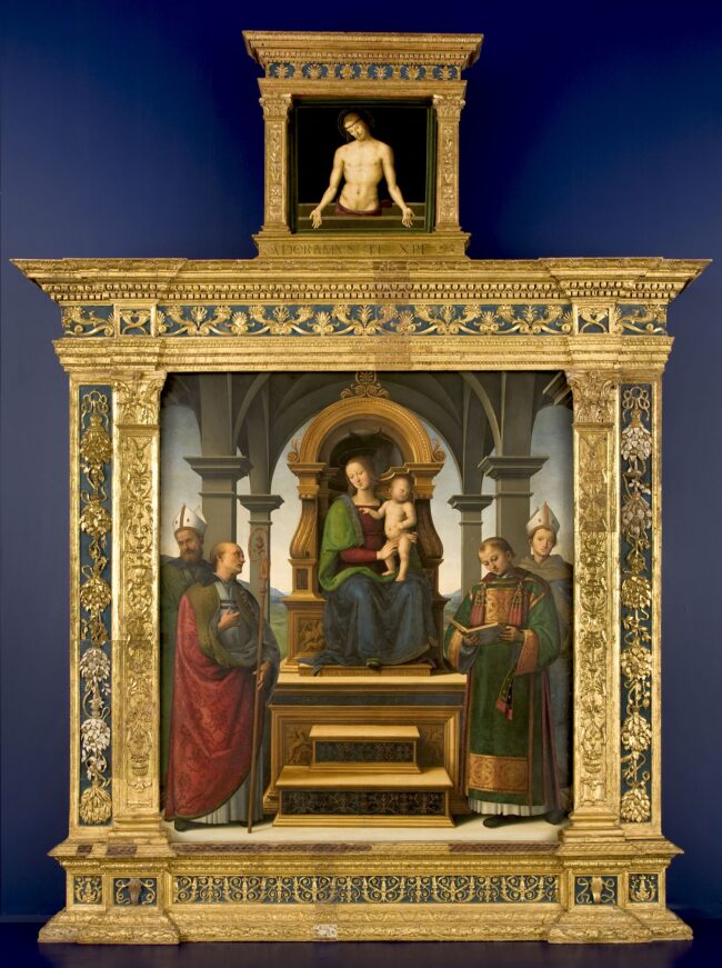 Pietro Vannucci detto il Perugino, Pala dei Decemviri, ricomposta alla Galleria Nazionale dell’Umbria; foto S. Bellu[/caption]