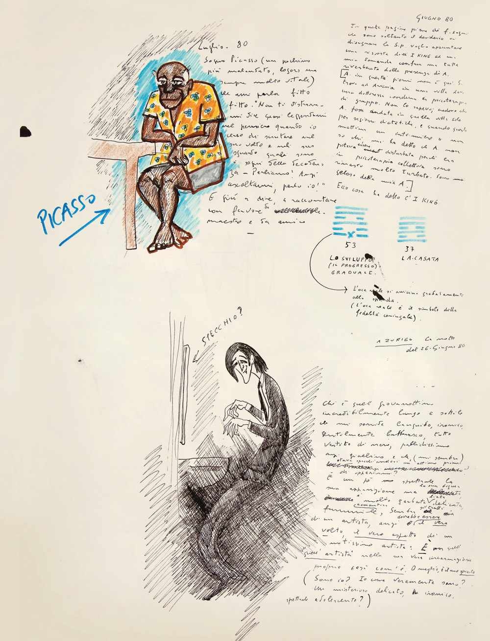 Accanto nella mostra “Il corpo sognato” i personaggi disincantati del regista italiano nei disegni dal “Libro dei sogni”, dove Fellini annotava il suo mondo onirico e in cui Pablo Picasso compare per ben tre volte.