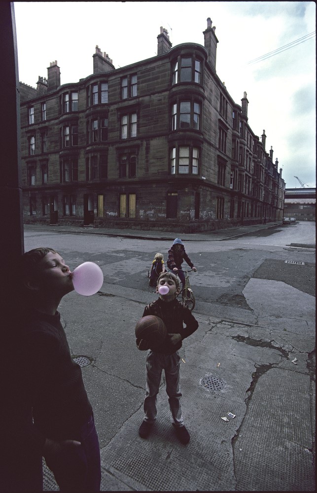 Un reportage lo conduce a Glasgow (1980) dove fotografa dei bambini, piccoli re delle strade, dei senzatetto, delle risse, cogliendo, a colori, l’inoperosità di una città quasi monocroma.