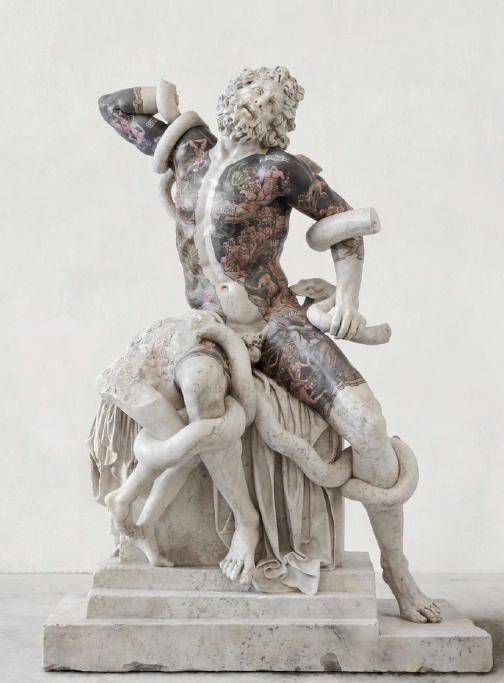 MONACO – Giovedì 12 luglio inaugura al Glyptothek Museum di Monaco di Baviera la prima mostra personale di Fabio Viale (Cuneo, 1975) in un museo tedesco. Accolto l’invito del Glyptothek Museum nello stabilire un parallelo tra le epoche attraverso il confronto di opere in marmo di impareggiabile valore e differenti poetiche, l’artista ha esposto nuove versioni di lavori che lo hanno contraddistinto durante la sua carriera: undici opere, per lo più di grandi dimensioni, rappresentano l’intero terreno di indagine di Viale (tra le altre Star-Gate, Aereo, Orbitale, Nike di Samotracia, Infinito, Door Release, Venere Italica, Anchor). Attraversando la mostra si può notare l’estrema qualità dei lavori associata allo spiazzamento percettivo per il quale il marmo dissimula se stesso per diventare legno, copertone, polistirolo, plastica, e abbandona la sua aura per divenire superficie di contrasto tra la bellezza classica e il tatuaggio contemporaneo.