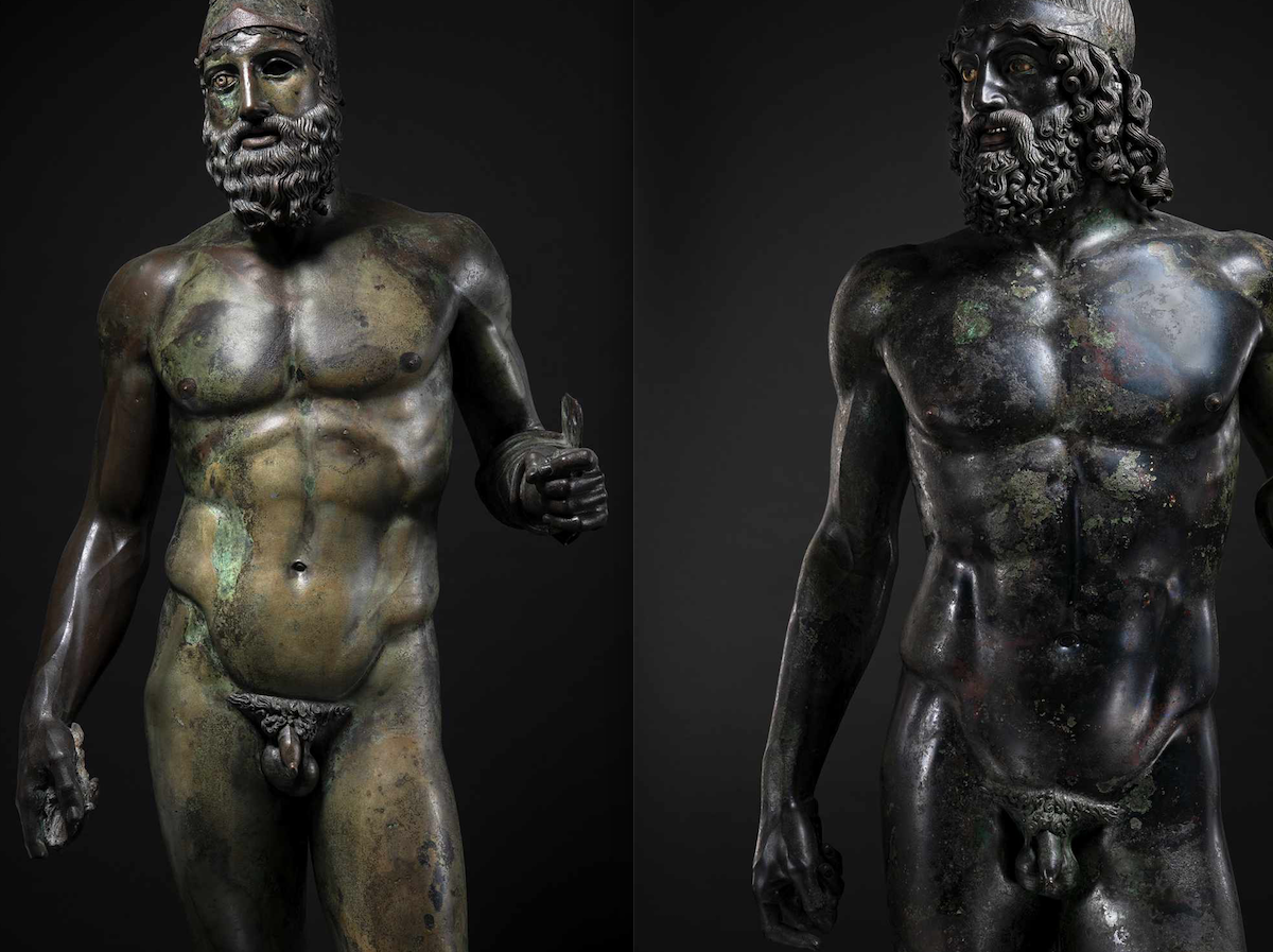 I Bronzi furono esposti per la prima volta al pubblico nel dicembre del 1980, a Firenze, nel Museo Archeologico, e poi, nel 1981, al palazzo del Quirinale, a Roma. Un evento di grande risonanza mediatica, che richiamò folle di visitatori da ogni dove. Gli studi hanno consentito di stabilire che le due opere sono riconducibili al secolo d’oro dell’arte greca, databili intorno alla metà del V sec. a.C., esempio di una sapiente e fine tecnica bronzistica, forse realizzate da due maestri diversi ma comunque per una destinazione pubblica.