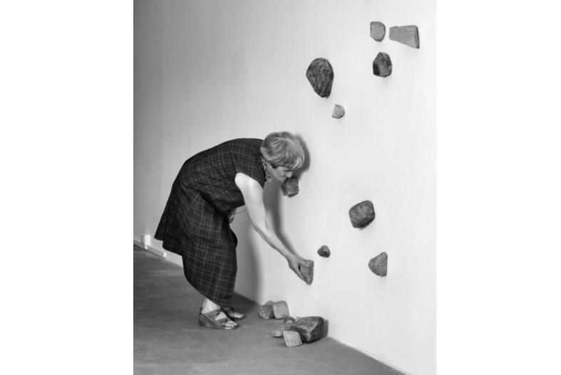 Questa atmosfera sospesa prosegue al piano superiore della galleria dove, per la prima volta, saranno esposte tutte le opere frutto degli interventi di Maria Lai sugli scatti di Piero Berengo Gardin che ritraggono momenti salienti della sua celeberrima e fondamentale opera pubblica Legarsi alla montagna. L’azione avvenuta nel 1981 che unì la popolazione di Ulassai ed ogni sua casa con il Monte Gedili è rimasta così vivida nella testimonianza di queste immagini, che tanto hanno colpito la memoria collettiva, non solo del paese sardo ma dell’intero mondo dell’arte. In mostra anche l’inedita opera in ceramica La frana ed il video originale dell’azione collettiva.