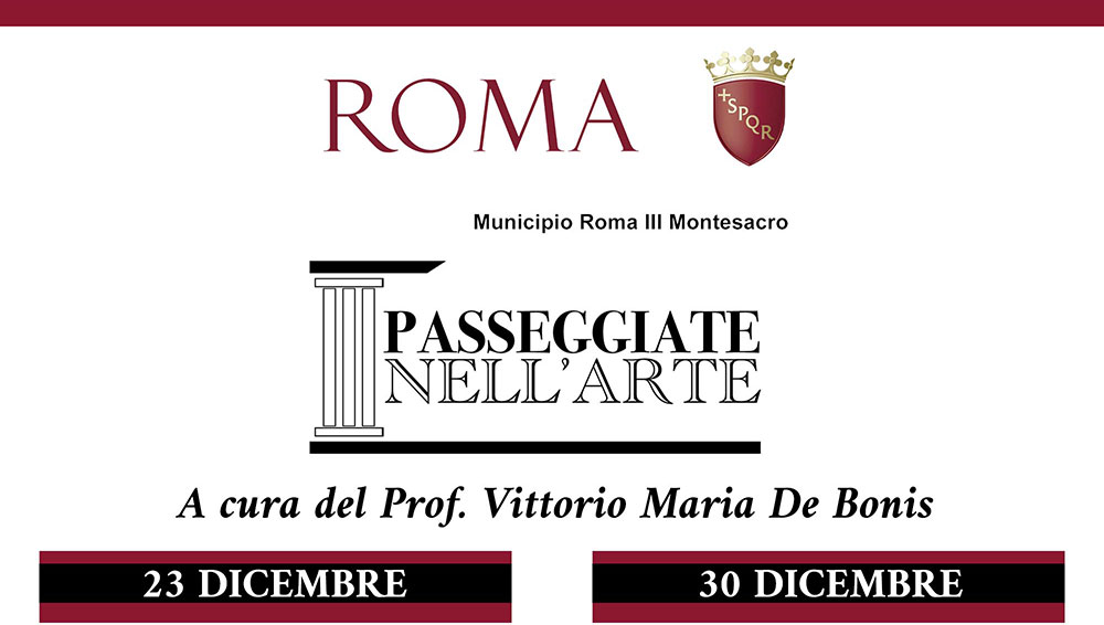 Incontri gratuiti, aperti a tutti i cittadini previo accredito, organizzati da DBG Management & Consulting, nell’ambito della manifestazione culturale “Passeggiate nell’arte”, ideata da Barbara Molinario e realizzata con il finanziamento del Municipio Roma III Montesacro.