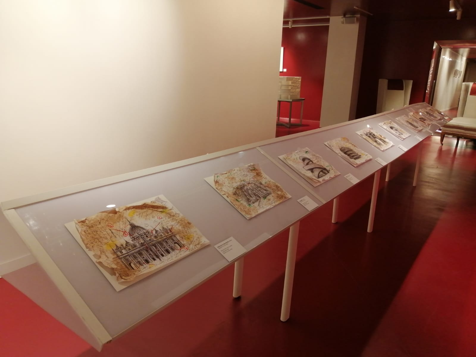 Oltre alle opere tradizionali – disegni e bozzetti – Galvano ha realizzato tre lavori, esposti per la prima volta in formato 3D. Si tratta dell’edificio che ospita la mostra – Interface HUB, realizzato da Attilio Terragni nel 2012 che incontra il Novocomum di Como, progettato da Giuseppe Terragni alla fine degli anni 20 del ‘900; il monumentale Makedomium di Krusevo che si fonde con il Fiore di Pietra di Mario Botta ed infine l’Arena di Verona che incontra il residence studentesco Tietgen Kollegiet di Copenaghen.