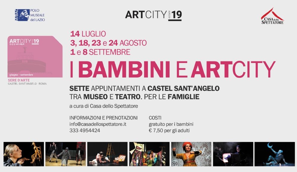 I Bambini e Artcity è l’iniziativa per i bambini tra i 3 e i 10 anni e per le loro famiglie che propone una modalità innovativa per vivere il patrimonio storico, artistico e architettonico del Polo Museale del Lazio attraverso l’incontro con le arti sceniche. Sette spettacoli indirizzati alle nuove generazioni e sette modi diversi per visitare e conoscere il Museo Nazionale di Castel Sant’Angelo.