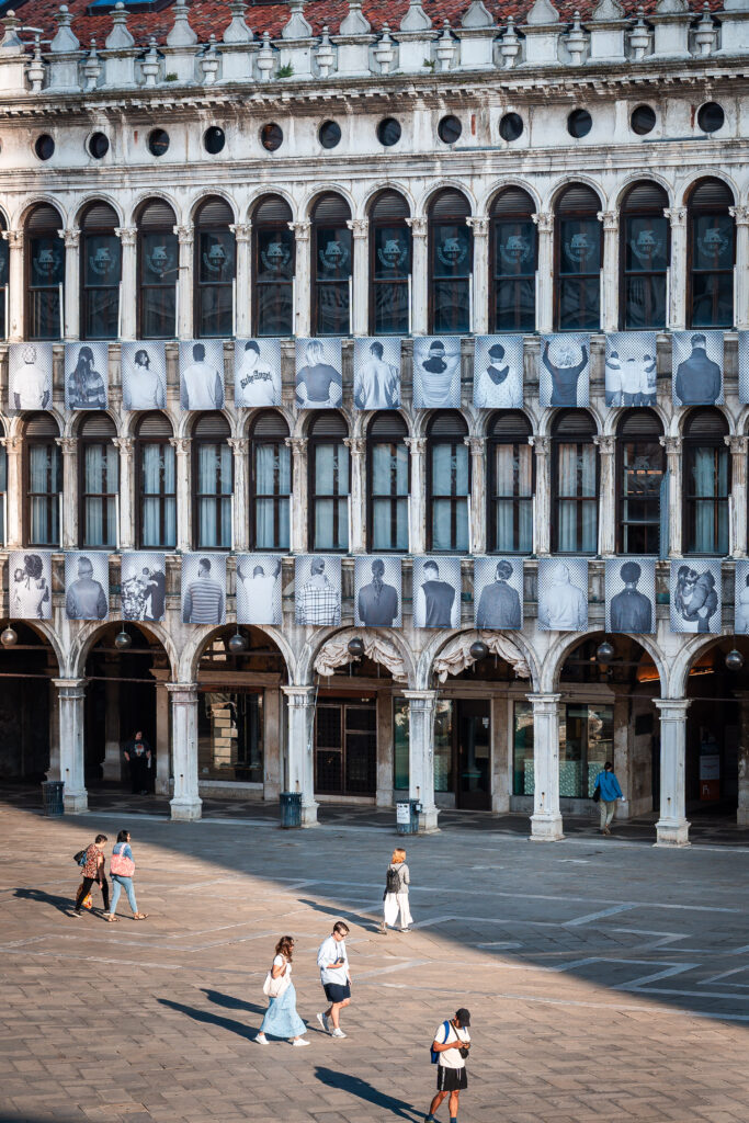 Dal 3 al 7 settembre 2025, la facciata delle Procuratie di Piazza San Marco si trasforma in una straordinaria galleria a cielo aperto: cento ritratti in bianco e nero di migranti, rivolti di spalle, raccontano silenziosamente storie di partenza, speranza e futuro. È Dreams in Transit, potente installazione curata dalla Fondazione Art for Action e ispirata al celebre progetto Inside Out dell’artista JR. Dreams in Transit più che una mostra si presenta come un’esperienza visiva e umana che trasforma uno dei luoghi più iconici d’Europa in un potente spazio di riflessione. Un’occasione unica per vedere l’arte pubblica dialogare con le grandi questioni del nostro tempo, al centro di Venezia.