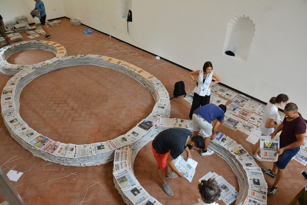 “Il Terzo Paradiso è la fusione tra il primo e il secondo paradiso. – scrive Michelangelo Pistoletto per descrivere questa sua opera che ad ogni istallazione si trasforma pur restando fedele a se stessa – Il primo è il paradiso in cui gli esseri umani erano totalmente integrati nella natura. Il secondo è il paradiso artificiale, sviluppato dall’intelligenza umana attraverso un processo che ha raggiunto oggi proporzioni globalizzanti. Questo paradiso è fatto di bisogni artificiali, di prodotti artificiali, di comodità artificiali, di piaceri artificiali e di ogni altra forma di artificio. Si è formato un vero e proprio mondo artificiale che, con progressione esponenziale, ingenera, parallelamente agli effetti benefici, processi irreversibili di degrado a dimensione planetaria. Il pericolo di una tragica collisione tra la sfera naturale e quella artificiale è ormai annunciato in ogni modo. Il progetto del Terzo Paradiso consiste nel condurre l’artificio, cioè la scienza, la tecnologia, l’arte, la cultura e la politica a restituire vita alla Terra, congiuntamente all’impegno di rifondare i comuni principi e comportamenti etici, in quanto da questi dipende l’effettiva riuscita di tale obiettivo. Terzo Paradiso significa il passaggio ad un nuovo livello di civiltà planetaria, indispensabile per assicurare al genere umano la propria sopravvivenza. Il Terzo Paradiso è il nuovo mito che porta ognuno ad assumere una personale responsabilità in questo frangente epocale. Il Terzo Paradiso ha come simbolo una riconfigurazione del segno matematico dell’infinito ed è formato da una linea che, intersecandosi due volte, disegna tre cerchi allineati. I due cerchi opposti significano natura e artificio, quello centrale è la congiunzione dei due e rappresenta il grembo generativo di una nuova umanità. L’umanità – conclude il maestro – ha vissuto due paradisi. Il primo in cui era totalmente compresa nella natura. Il secondo in cui si é espansa in un proprio mondo artificiale cresciuto fino a confliggere con il pianeta naturale. È venuto il momento di dare inizio al Terzo Paradiso nel quale l’umanità riuscirà a conciliare e coniugare l’artificio con la natura, creando un nuovo equilibrio esteso a ogni livello e ambito della società: un passaggio evolutivo nel quale l’intelligenza umana trova i modi per convivere con l’intelligenza della natura.