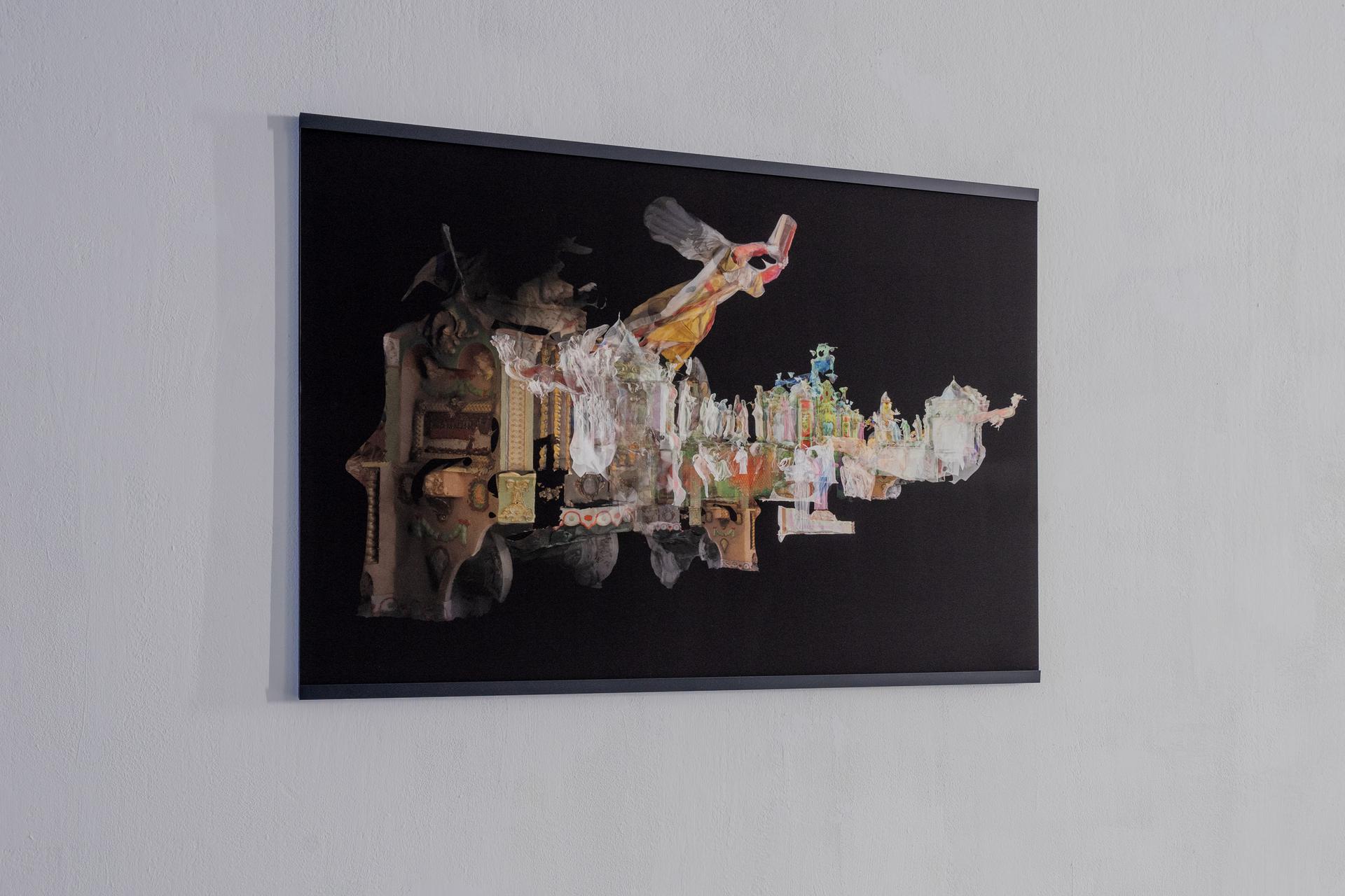 “Nell’affollatissima piazza principale, smartphone e macchine fotografiche sopra le teste del pubblico sono puntate sull’imminente ‘strazzo’ del Carro Trionfale” – racconta l’artista – “L’aria è elettrica, nell’attesa del momento cruciale della festa. Il Carro in cartapesta sopraggiunge trainato da muli in corsa. La piazza si contrae e si lancia, il gigante scompare sotto gli occhi di tutti, diviso in migliaia di frammenti. Nell’attimo prima della sua evanescenza, la piazza costellata di dispositivi ha inconsapevolmente astratto e duplicato il grande artefatto. È una nube di punti, una fotogrammetria composta da vettori luminosi nello spazio nero virtuale: il terzo cielo stellato”.