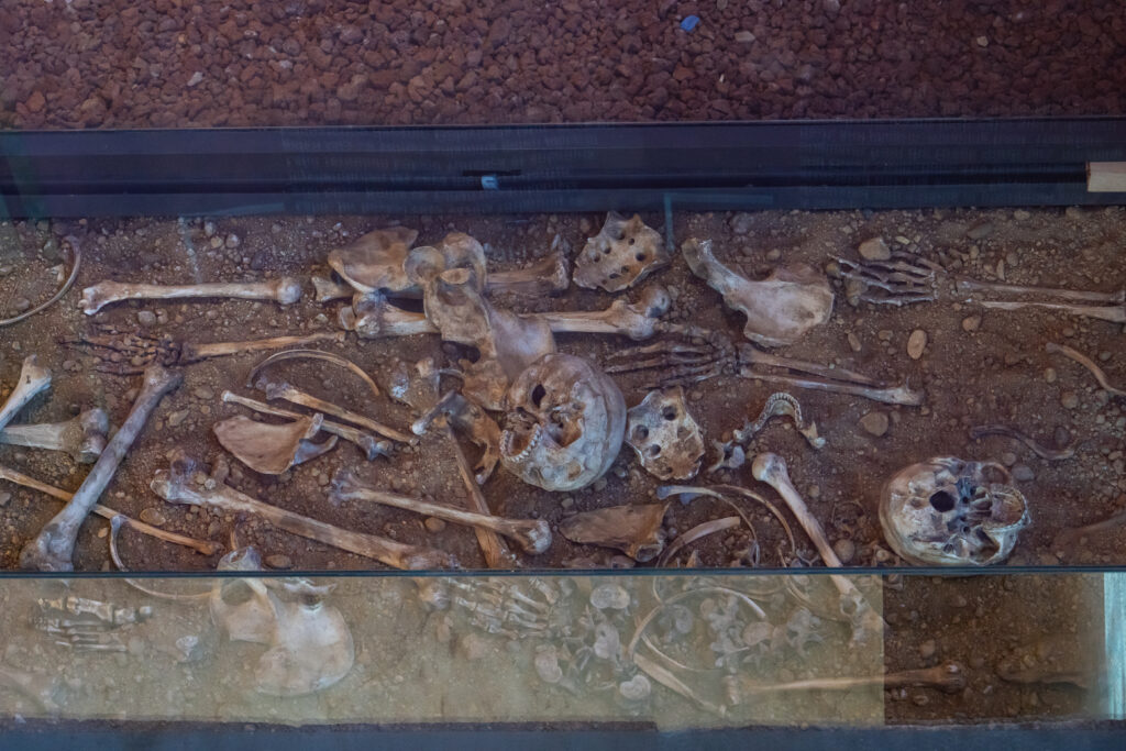 La reale estensione del complesso si è compresa nel 2019, con nuovi scavi che hanno rivelato la prosecuzione dei motivi geometrici oltre i limiti inizialmente individuati. Non solo: è emerso anche un sarcofago in marmo con i resti di due individui, insieme a una tomba in laterizi, vasi in terracotta e monete di epoche diverse. Elementi che raccontano una lunga frequentazione del sito e una stratificazione d’uso che va ben oltre la funzione originaria del pavimento decorato.