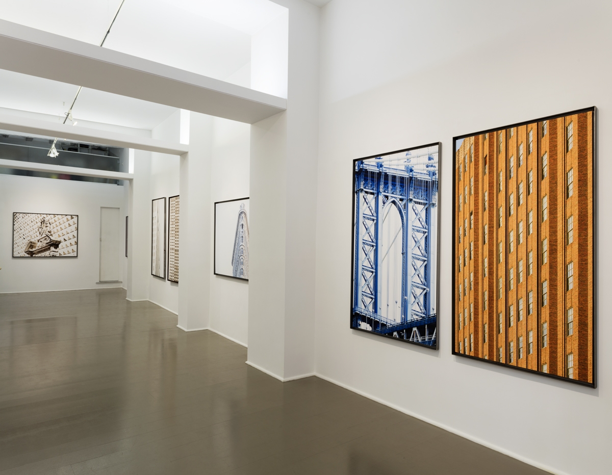 Questo senso di sospensione temporale è costante e accentuato dal fatto che a volte gli edifici più che fotografati appaiono disegnati o dipinti. “⊥. 18:55 . NEW YORK”, che si distanzia formalmente dagli altri lavori in mostra e che ritrae il National September 11 Memorial, ci propone una visione ad altezza uomo, portandoci quasi a specchiarci di notte nell’acqua di un ninfeo. La carta cotone – su cui Borghese stampa – assorbe il colore e propone una liquidità inaspettata e una profondità che scardina le geometrie, avviluppando lo sguardo e alternandosi agli scatti in cui queste emergono più evidenti; sempre però private di rigidità in favore di un rigore che abbatte quel connotato di monumentalità poco amato dalla fotografa.