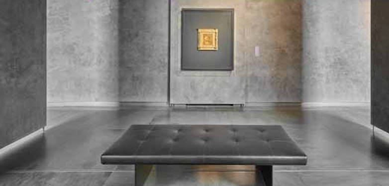 La splendida tavola di Leonardo è stata ora posizionata su una ampia superficie metallica grigia e su una parete in marmorino anch’esso grigio, che crea un perfetto contrasto cromatico con l’oro e il bruno che connotano il dipinto e la cornice. Per farne apprezzare l’eccezionalità senza interrompere il percorso tematico espositivo, è stato creato uno spazio dedicato. La tavoletta appare collocata all’interno di una vetrina speciale, un climabox appositamente progettato, che ripara il capolavoro di Leonardo, non solo dal pericolo di intromissione da parte di malintenzionati, ma la preserva anche dalle polveri e da eccessi di luminosità e umidità.