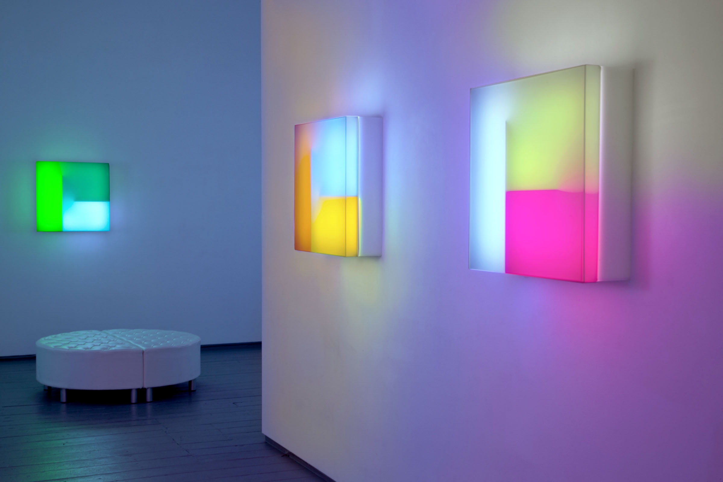 L’esposizione perugina ha come protagoniste le Lightbox, combinazioni di seducenti ‘paesaggi di colore’ auto-generati utilizzando una serie di luci a LED intrecciate. Il percorso è inoltre arricchito da Raphael Revisited (2011), una serigrafia dell’artista inglese Tom Phillips (Londra, 1937), legato a Brian Eno da un legame di amicizia e collaborazione. L’opera trae ispirazione da una tavoletta votiva, databile alla fine del Quattrocento, di un anonimo pittore umbro identificato in precedenza con un giovanissimo Raffaello (conservata alla Walker Art Gallery di Liverpool) che verrà utilizzata da Eno per la copertina dell’album Another Green World.