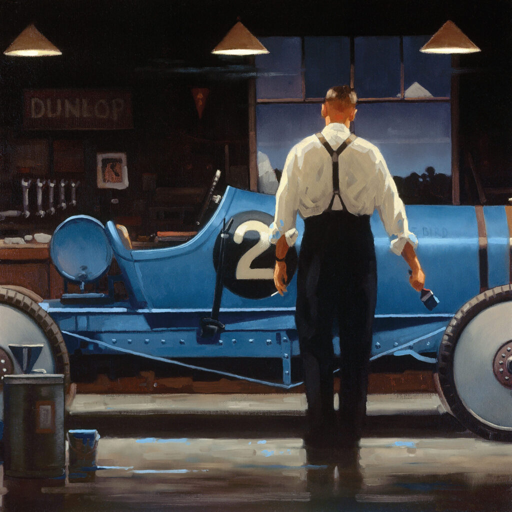La biografia di Vettriano contribuisce a spiegare, almeno in parte, l’intensità emotiva che attraversa le sue immagini. Nato nel 1951 nella contea scozzese di Fife con il nome di Jack Hoggan, cresce in un contesto operaio legato all’industria mineraria e inizia a lavorare in giovanissima età. La pittura non è il risultato di una formazione accademica, ma di un apprendistato solitario e ostinato, iniziato dopo aver ricevuto in regalo una scatola di colori. Da autodidatta, Vettriano studia i maestri del passato, l’Impressionismo, il Surrealismo e l’arte scozzese, assimilando allo stesso tempo suggestioni provenienti dal cinema e dalla grafica pubblicitaria.