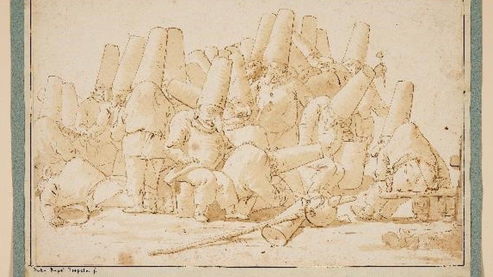 Il disegno a penna e inchiostro, intitolato “Un grande gruppo di Pulcinella”, sarà uno dei punti salienti della prossima vendita del catalogo “Weston Hall and the Sitwells: A Family Legacy”.