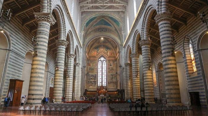 Da qui poi il professor Paolucci ci conduce al ‘museo santuario’, ovvero al Duomo di Orvieto, il cui profilo si staglia in cima alla rocca dell’ultima città sulla via che conduceva a Roma dal nord e dal centro Europa. Il complesso è una straordinaria raccolta di capolavori: dalla facciata con i bassorilievi che illustrano le storie del Vecchio e Nuovo testamento fino al Giudizio Universale, all’interno con le Cappelle del Corporale e di San Brizio affrescate e decorate da artisti come Beato Angelico e Luca Signorelli.