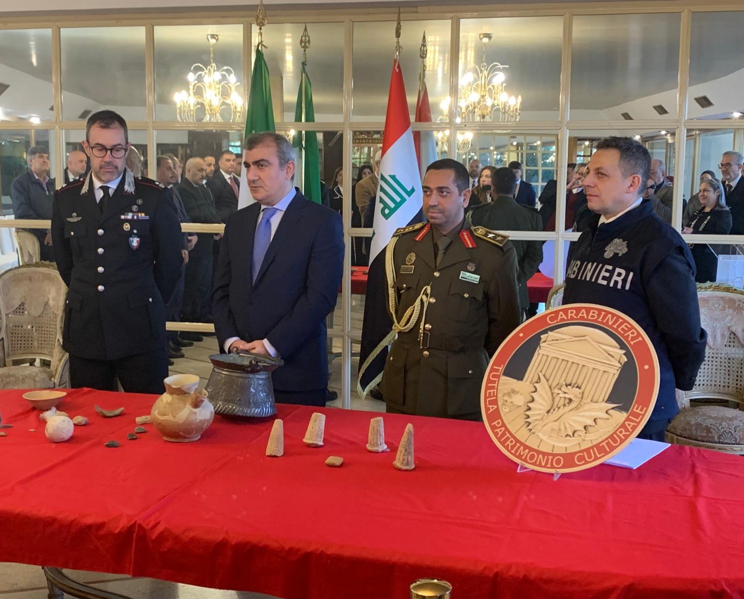 ROMA – Cinque reperti archeologici di straordinario valore storico e culturale, provenienti dall’Iraq e illecitamente esportati, tornano nel loro paese d’origine grazie all’operazione condotta dal Comando Carabinieri TPC. L’indagine, avviata dal Nucleo TPC di Monza, ha portato al sequestro di quattro coni in terracotta e una tavoletta cuneiforme, risalenti al III millennio a.C., che sono stati restituiti ufficialmente all’Ambasciata della Repubblica dell’Iraq a Roma il 29 gennaio 2025.