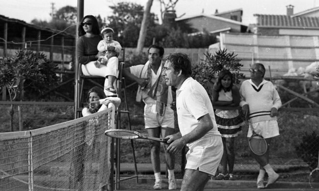 Ugo Tognazzi, Vittorio Gassman, Franca Bettoja e Luciano Salce torneo di tennis al Villaggio Tognazzi-Torvajanica 1968 foto Marcello Geppetti (c) MGMC/dolceVita GALLERY [/caption]