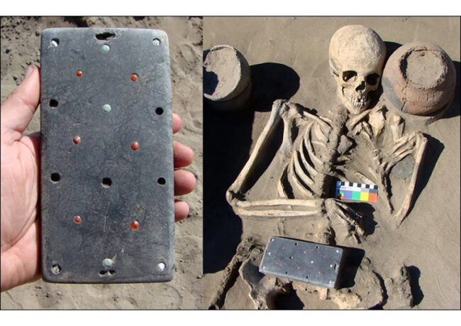 Questo è quello che sembra essere il reperto che gli archeologi hanno rinvenuto in una tomba di una giovane donna, trovata grazie al prosciugamento di un bacino artificiale in Siberia. In realtà si tratta di una fibbia decorata con pietre semi-preziose