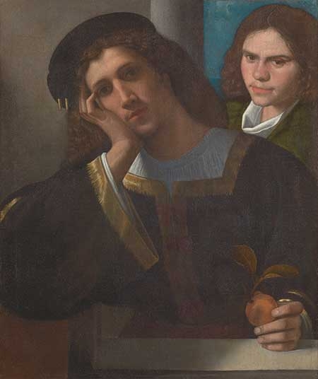 Giorgio da Castelfranco detto Giorgione (Castelfranco Veneto, 1477 c. – Venezia, 1510) Due amici 1502 c. Olio su tela, cm 77 x 66,5 Roma, Museo di Palazzo Venezia[/caption]