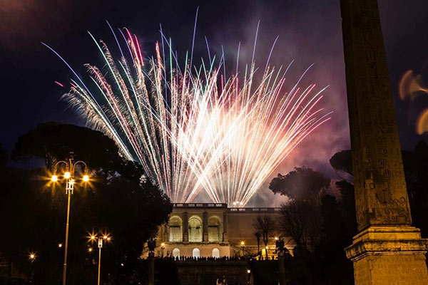 Piazza del Popolo. Torna ad accendersi la storica “Girandola” sulla terrazza del Pincio. Foto