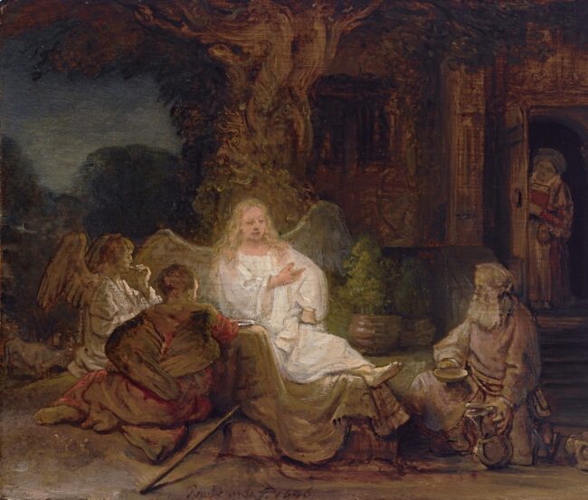 Rembrandt van Rijn’s Abraham and the Angels, 1646. Oil on panel. Courtesy of Sotheby’s[/caption]