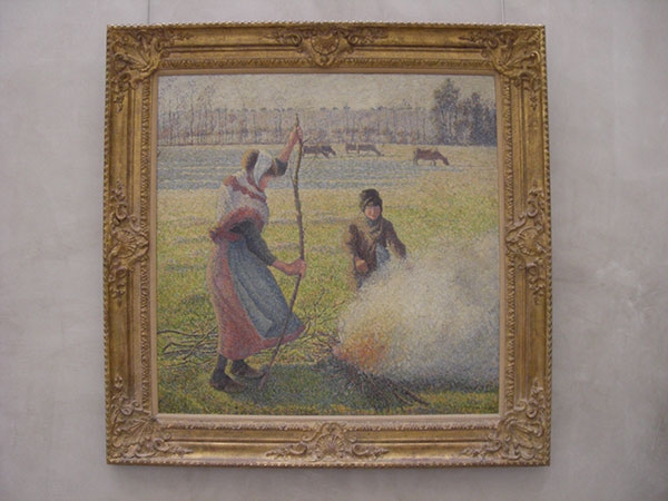 Camille Pisarro “Gelée blanche, jeune paysanne faisant du feu[/caption]