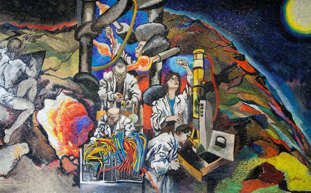 Renato Guttuso, La ricerca scientifica – 1961 – mosaico installato della Fondazione Pirelli[/caption]