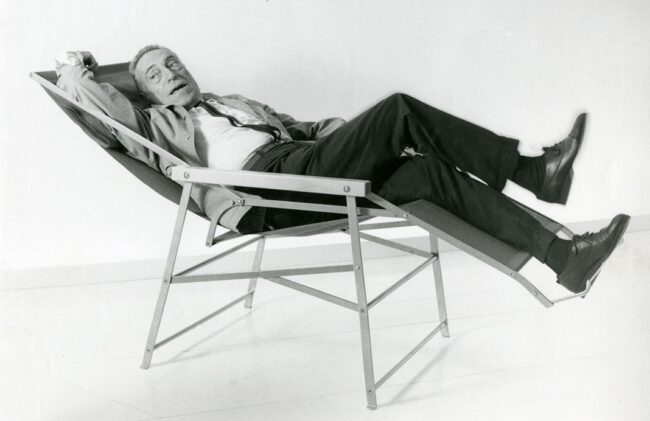 Fondazione Achille Castiglioni – A. Castiglioni su sdraio Imperiale, 1983[/caption]