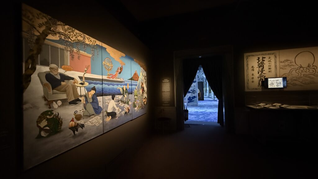 Accanto a questi capolavori, la mostra approfondisce aspetti meno noti ma fondamentali: l’estetica dell’Edo urbano attraverso tessuti e abiti, il dialogo tra immagine e letteratura, la raffinata produzione dei surimono – stampe destinate a circoli colti – e il mondo dei racconti fantastici, popolati da spiriti e apparizioni. Il percorso si completa con sezioni dedicate agli oggetti della cultura materiale, come ceramiche e bronzi, che riflettono la stessa attenzione alla forma e alla misura presente nelle opere di Hokusai. Nel complesso, la mostra restituisce un’immagine articolata e profonda dell’artista, evidenziandone la capacità di trasformare ogni soggetto – dal paesaggio al quotidiano, dal reale al fantastico – in una visione universale e ancora sorprendentemente attuale.