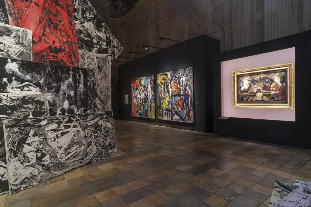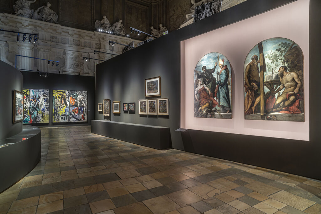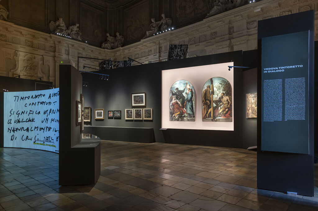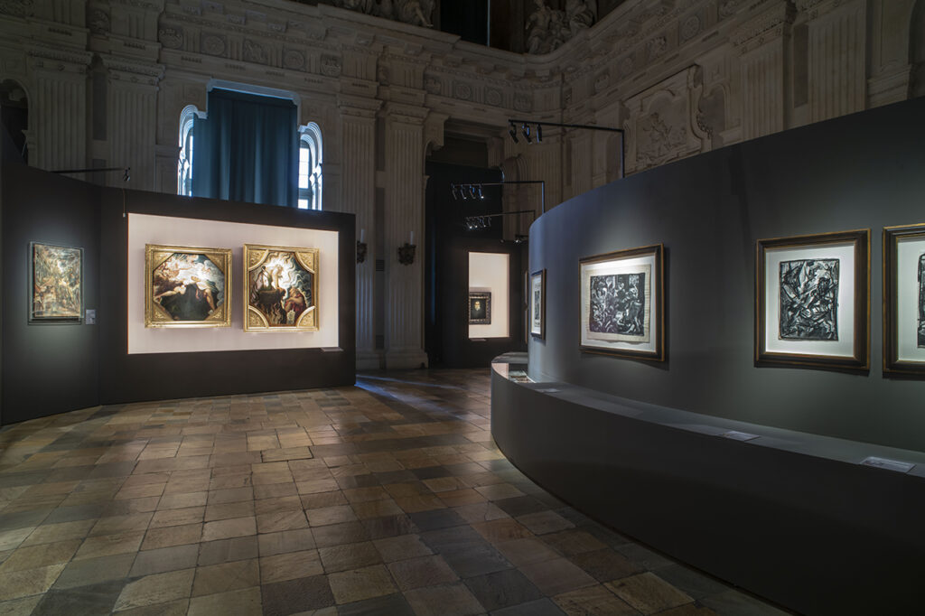 Attraverso una selezione di dipinti, disegni e installazioni, il pubblico potrà seguire il modo in cui Tintoretto è diventato per Vedova un maestro di riferimento – una “identificazione” poetica, come l’artista stesso dichiarava – e come questo rapporto si sia tradotto in opere dense di tensione, ritmo e materia. “Per la prima volta questa mostra delinea con estrema scientificità i processi della formazione del pensiero del giovane Vedova sui testi pittorici di Tintoretto – dichiara Gabriella Belli, curatrice della mostra. – Il percorso ordinato e visionario allo stesso tempo proietta il pubblico nella piena maturità del pittore veneziano, quando era ancora forte il debito per la pittura incandescente e premonitrice di Tintoretto. L’ intensità si coglie anche nella monumentale opera di Vedova …in continuum, 100 e più tele, un lavoro unico, quasi un omaggio in felice competizione con lo sforzo creativo dei grandi teleri veneziani del suo profeta Tintoretto.”